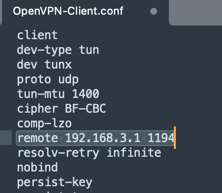 修改完保存,然后修改文件后缀,.conf修改为.ovpn