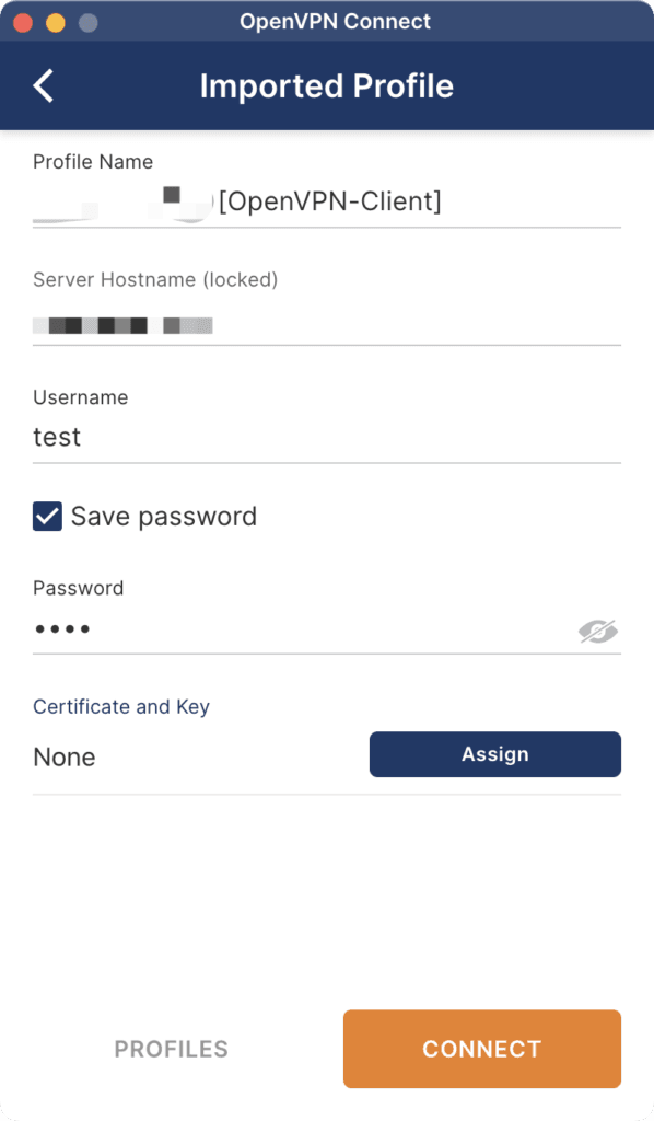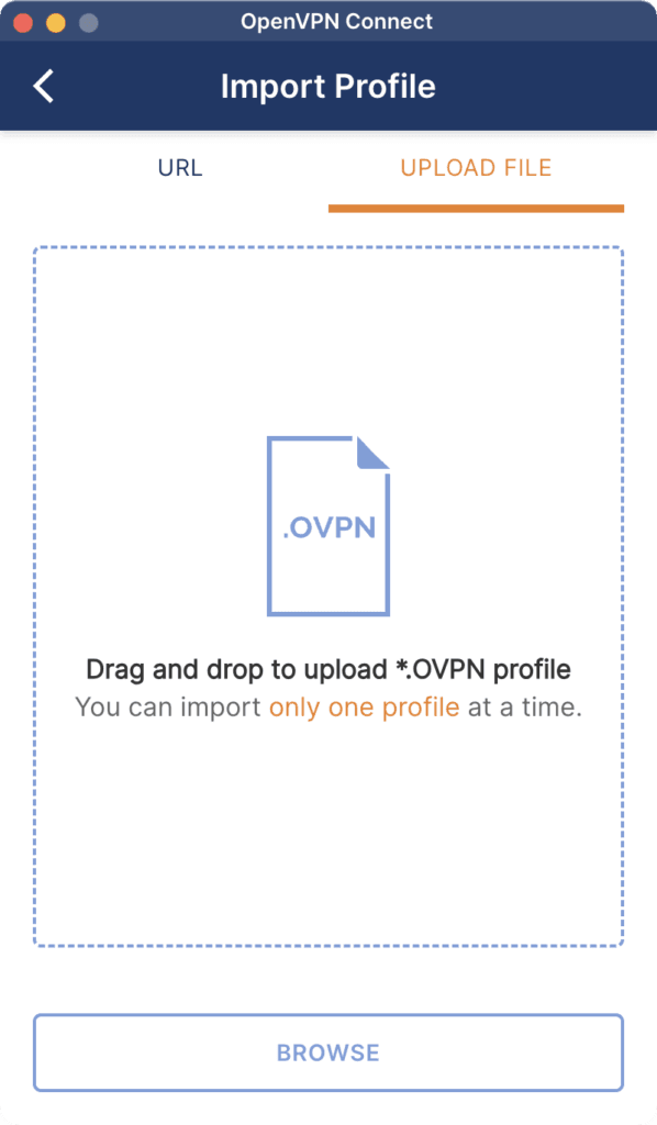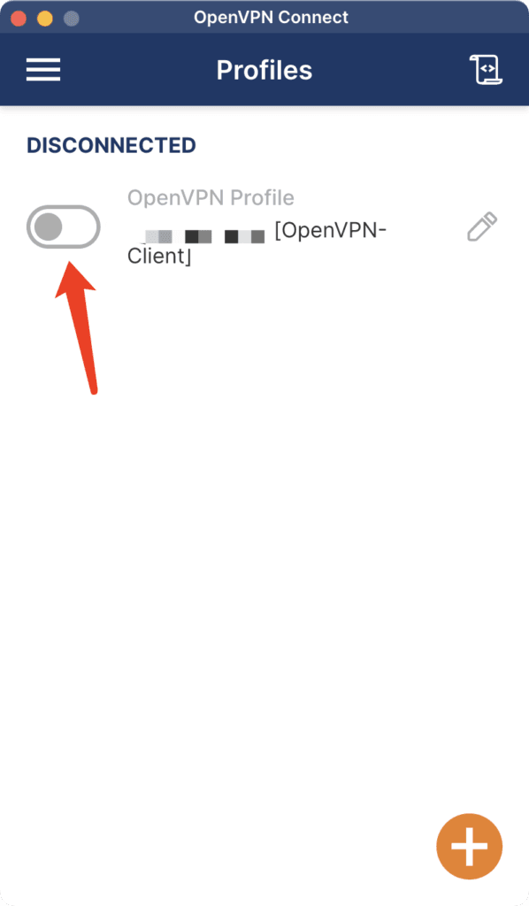 OpenVPN客户端选择Import Profile–>upload file,选择OpenVPN-Client.ovpn文件